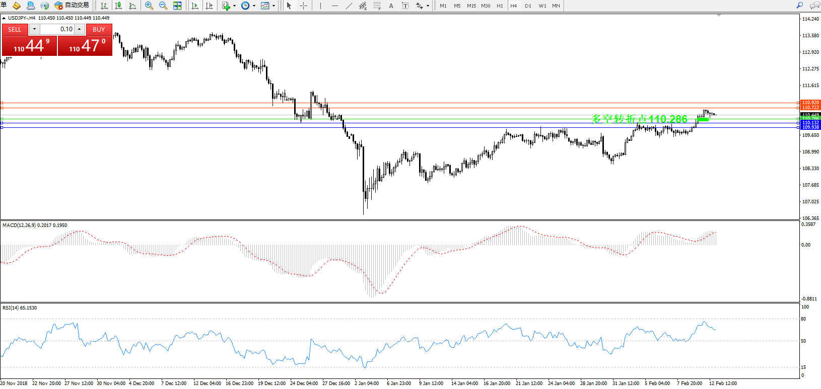 交易策略:110.286上方看涨,目标110.722110.920