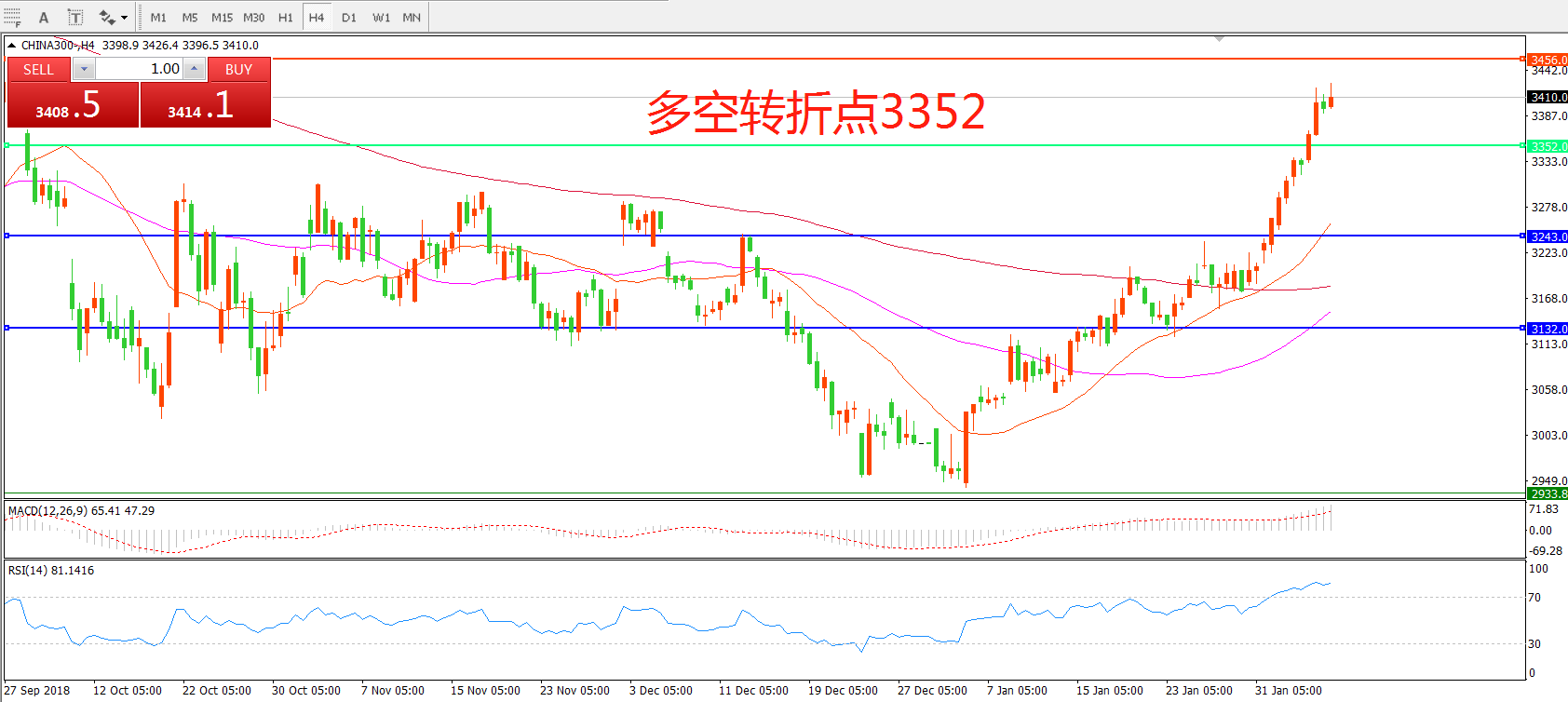 多空转折点:3352.00