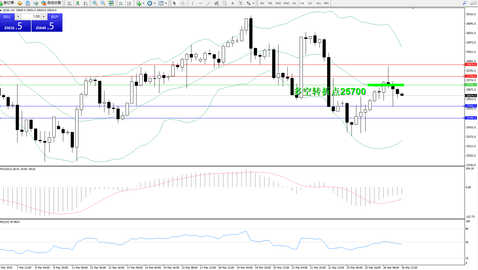 交易策略:25700下方看跌,目标25566、25490