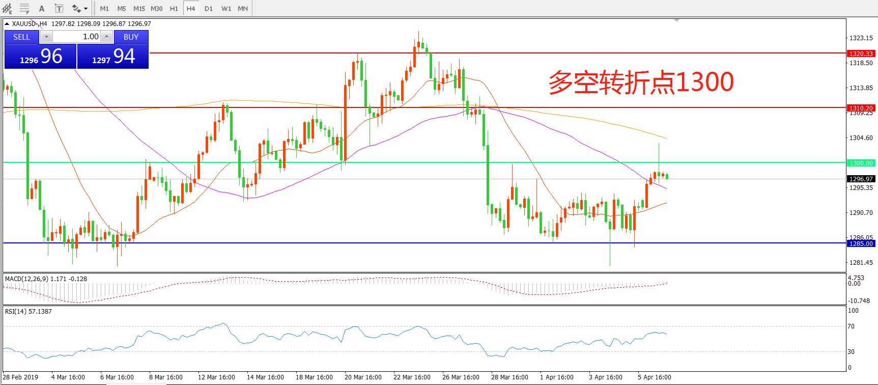 多空转折点:1300.00