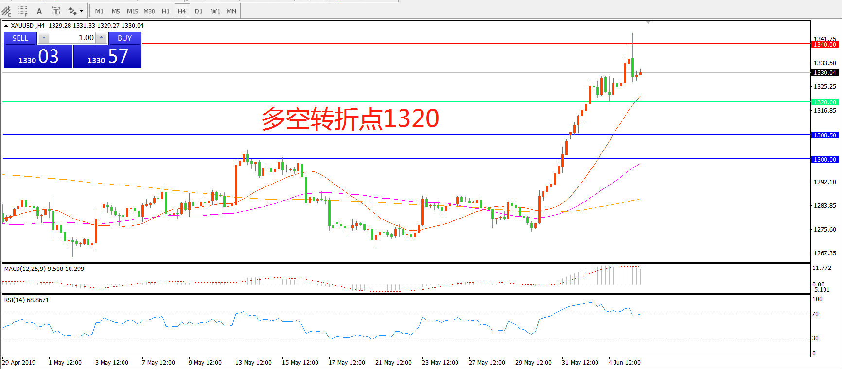 交易策略:在1320.00之上看涨,目标1340.00 1354.00
