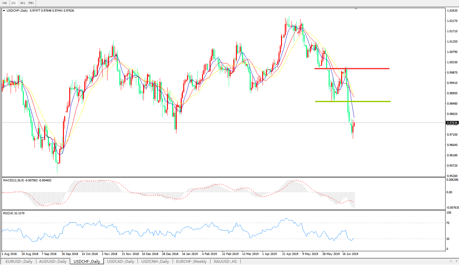支撑位:0.9700、0.9650