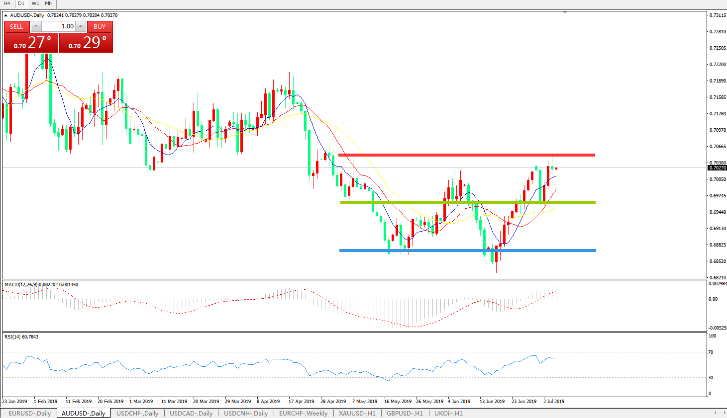 交易策略:0.6960上方看涨,目标0.70200.7100