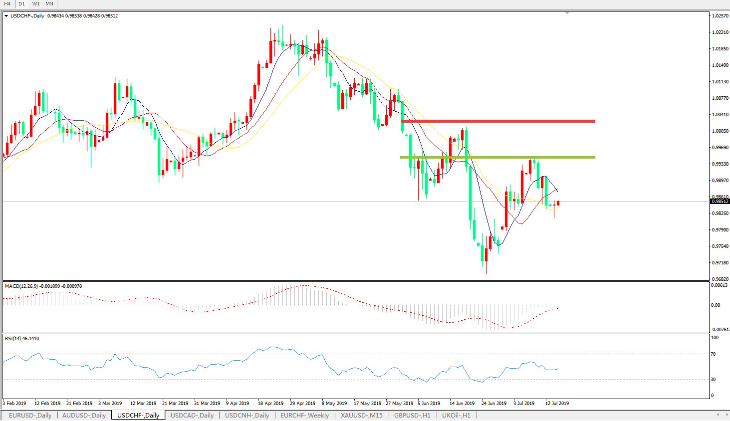 支撑位:0.9800、0.9700