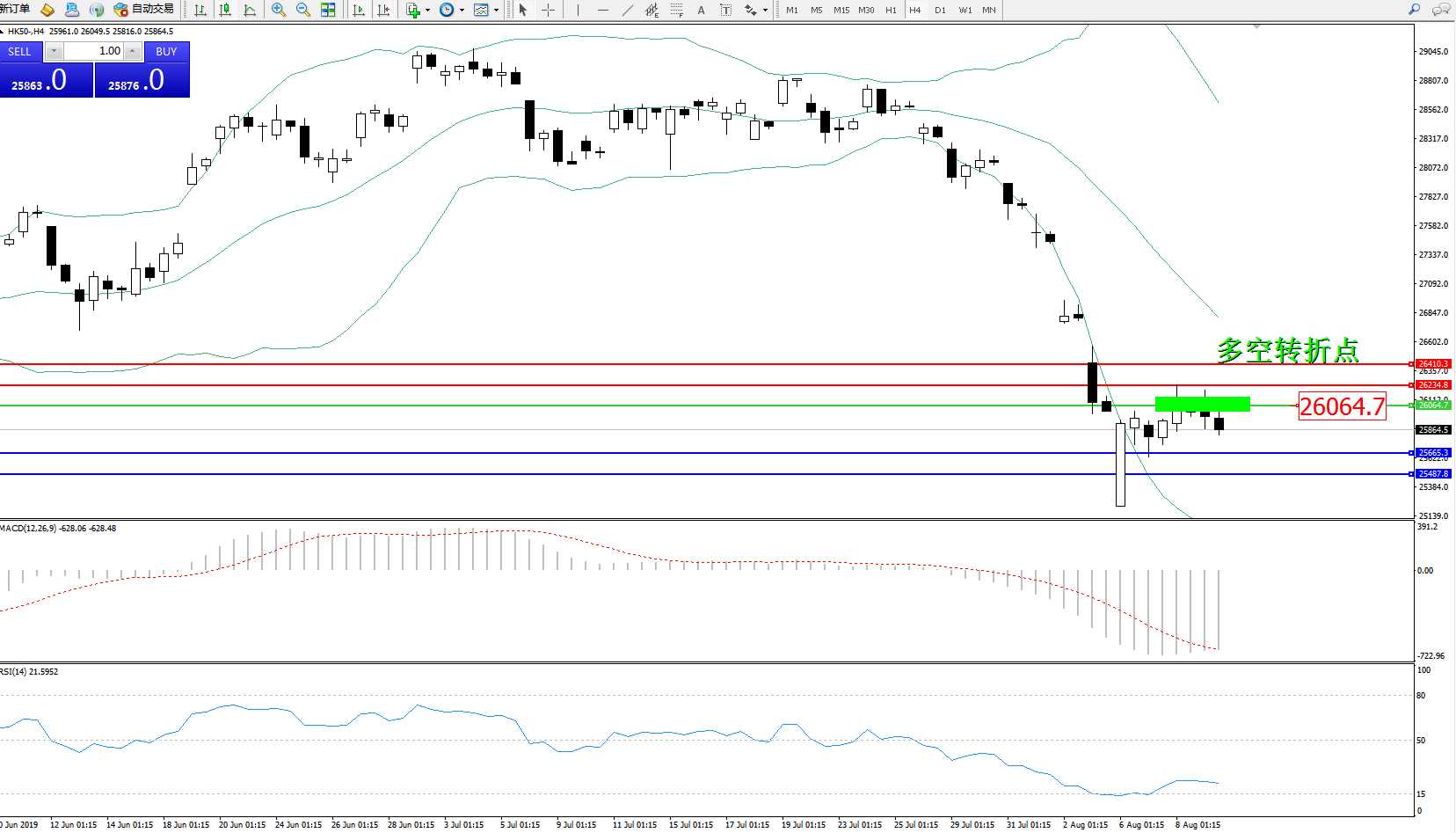恒指HK50 ——4小时K线图显示: