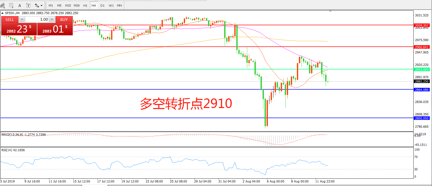 多空转折点:2910.00