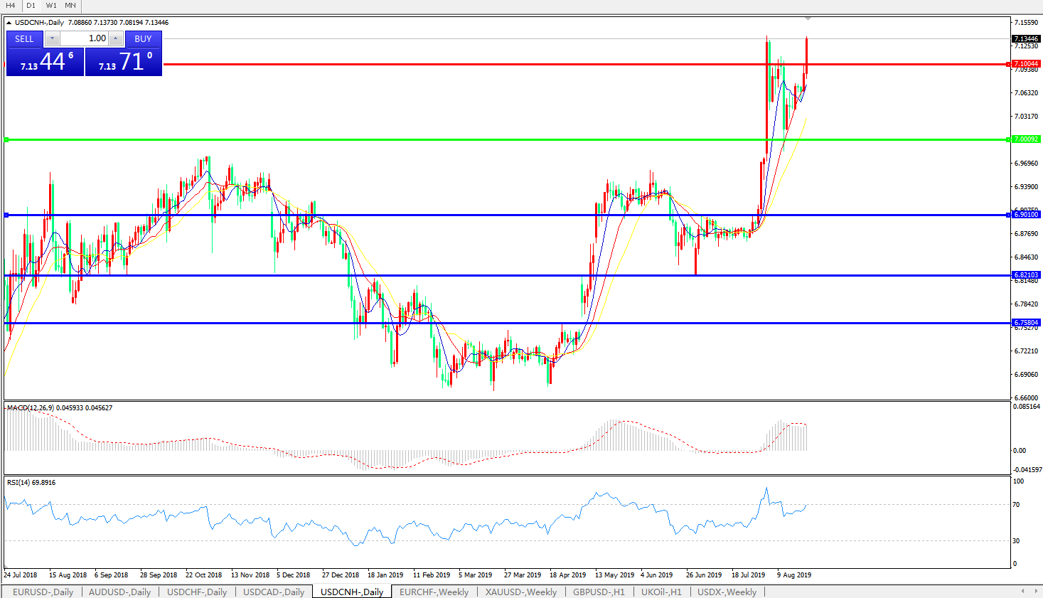 交易策略: 在7.0000之上,看涨,目标价位为7.1000,然后为7.2000。