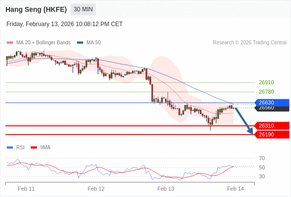 在 26630 之下,看跌,目标价位为 26310 ,然后为 26190 。