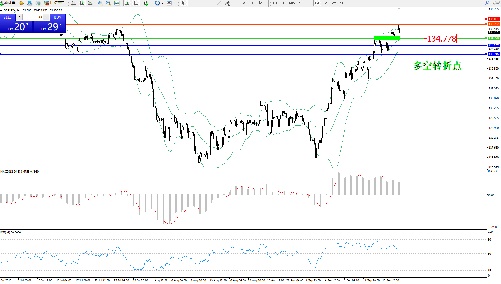 交易策略:134.778上方看涨,目标135.702、136.034