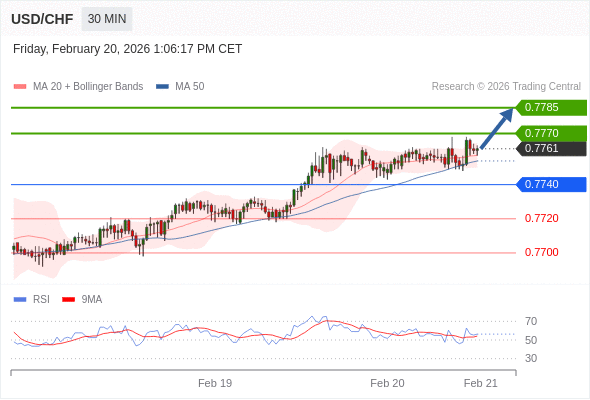 在 0.7740 之上,看涨,目标价位为 0.7770 ,然后为 0.7785 。