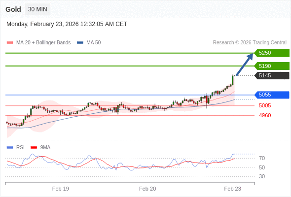 在 5055 之上,看涨,目标价位为 5190 ,然后为 5250 。