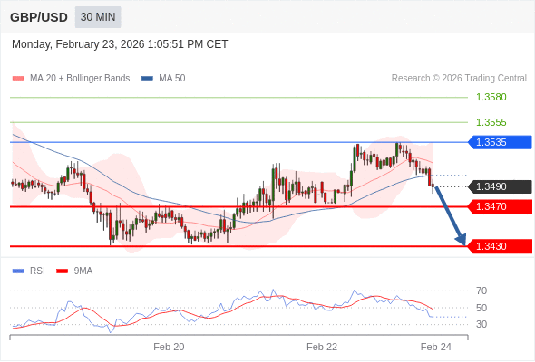 在 1.3535 之下,看跌,目标价位为 1.3470 ,然后为 1.3430 。