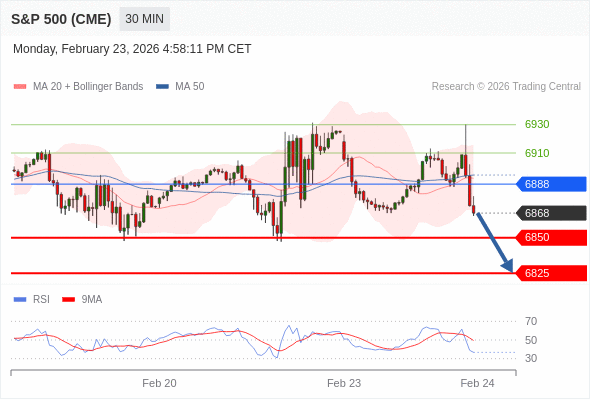 在 6888 之下,看跌,目标价位为 6850 ,然后为 6825 。