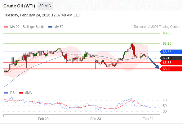 交易策略: 在 66.65 之下,看跌,目标价位为 65.85 ,然后为 65.40 。