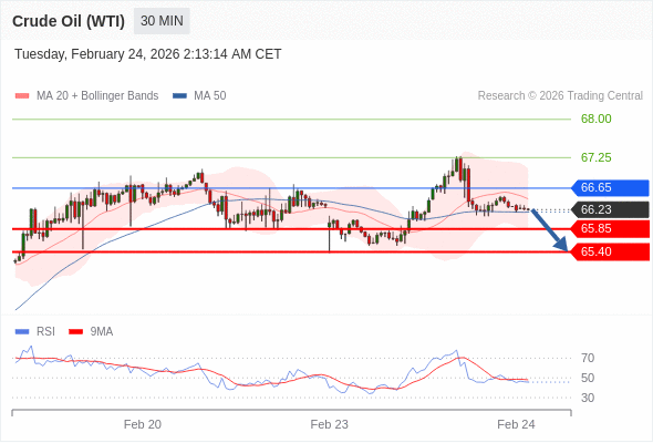 交易策略: 在 66.65 之下,看跌,目标价位为 65.85 ,然后为 65.40 。