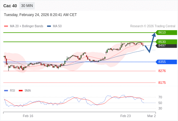 Cac 40 当日内: 期待8530。