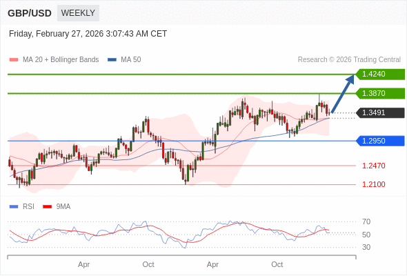 在 1.2950 之上,看涨,目标价位为 1.3870 ,然后为 1.4240 。