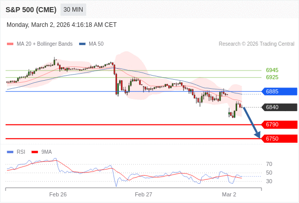 交易策略: 在 6885 之下,看跌,目标价位为 6790 ,然后为 6750 。