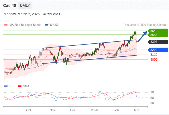 Cac 40 短线: 没有明显变化趋势。