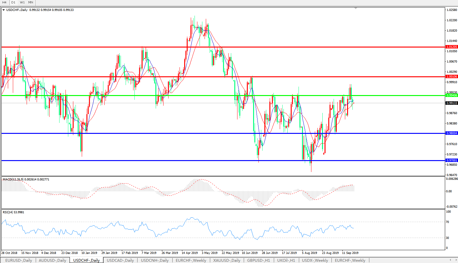 美元兑瑞郎USDCHF 日线图: