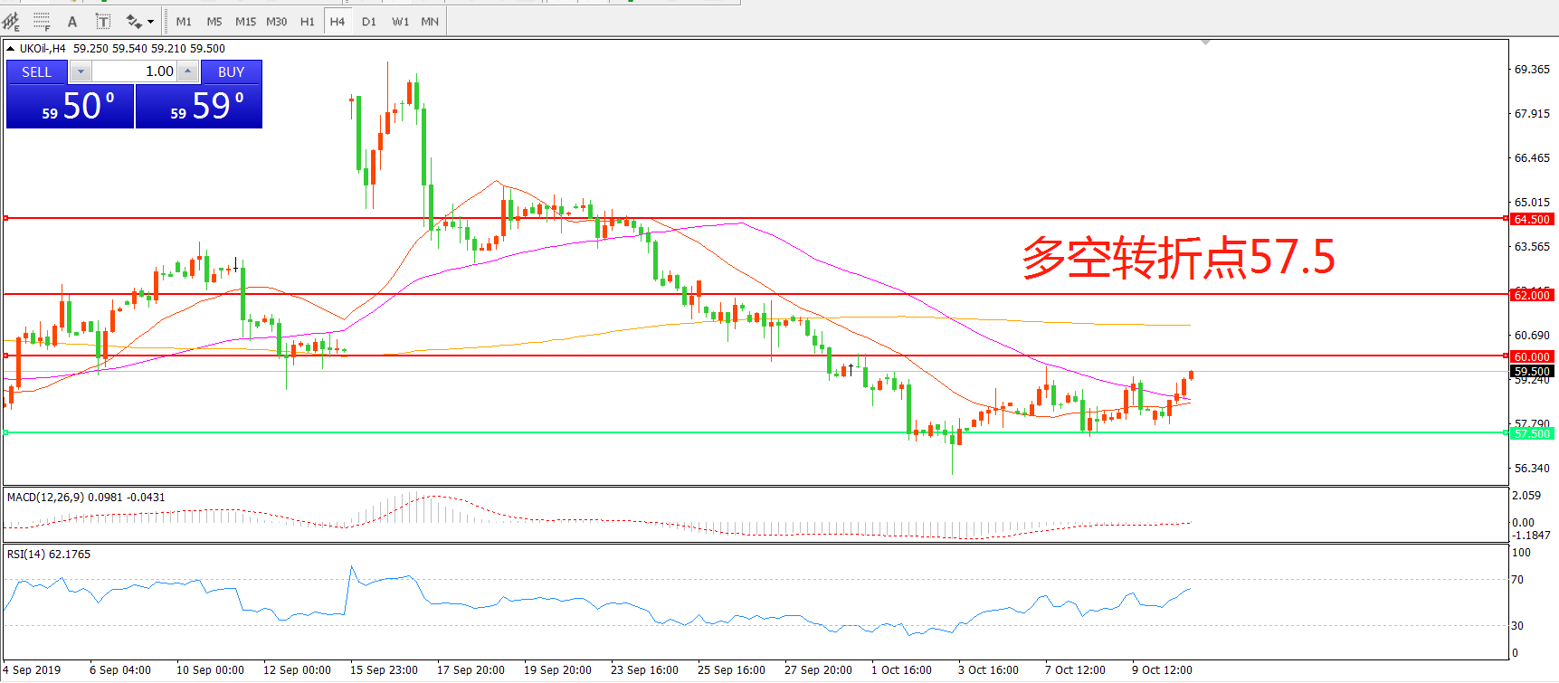 多空转折点:57.50