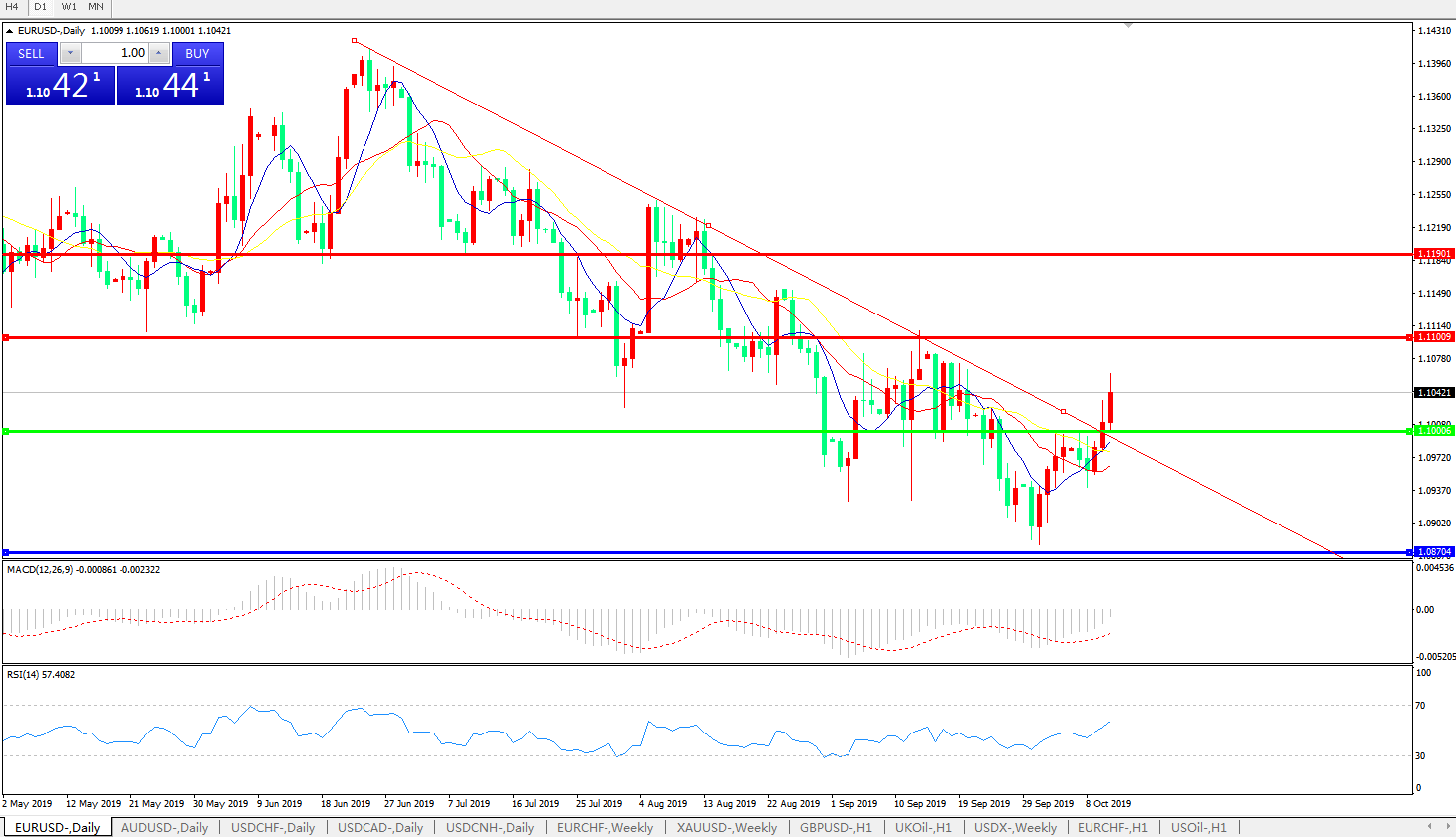 交易策略:1.1000上方看涨,目标1.1100、1.1190