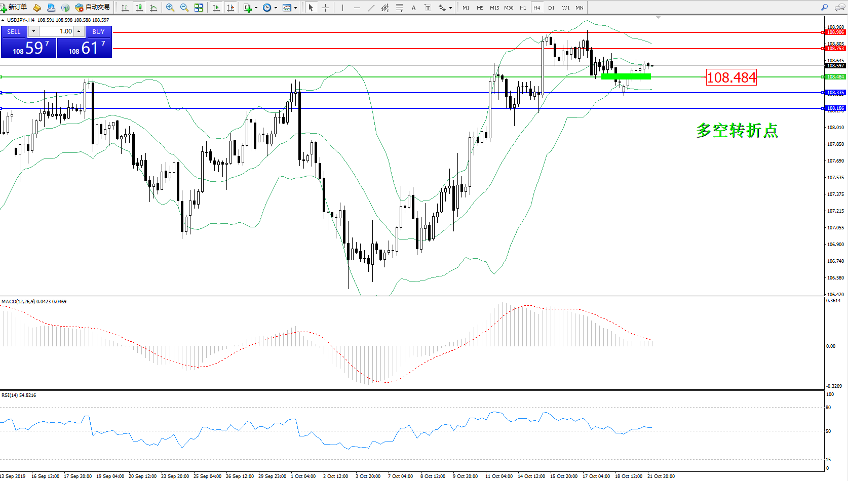 交易策略:108.484上方看涨,目标108.753108.906
