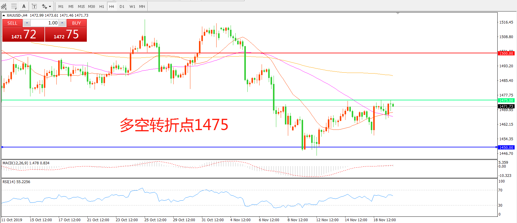 多空转折点:1475.00