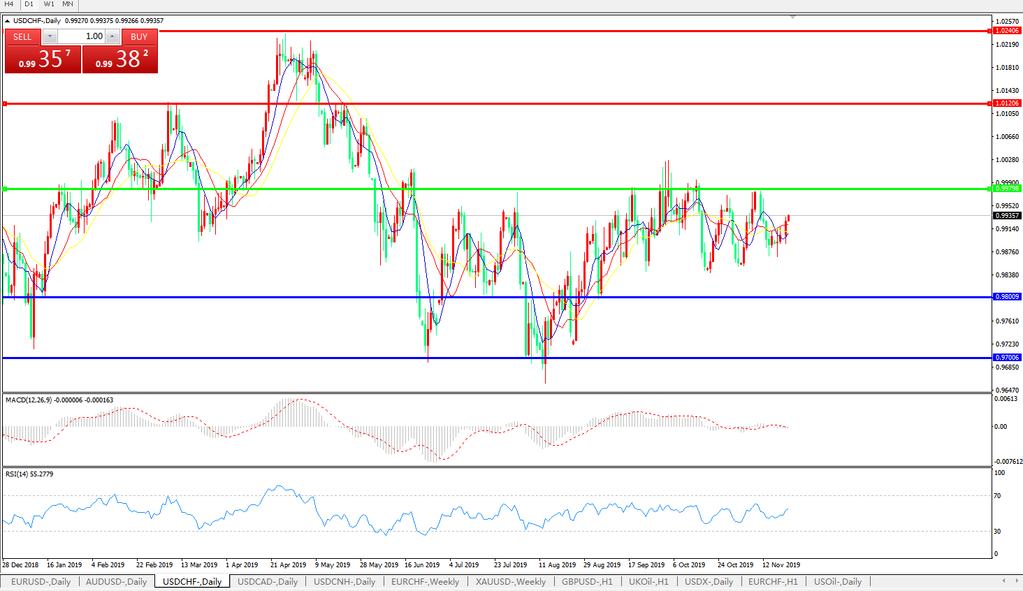 美元兑瑞郎USDCHF 日线图: