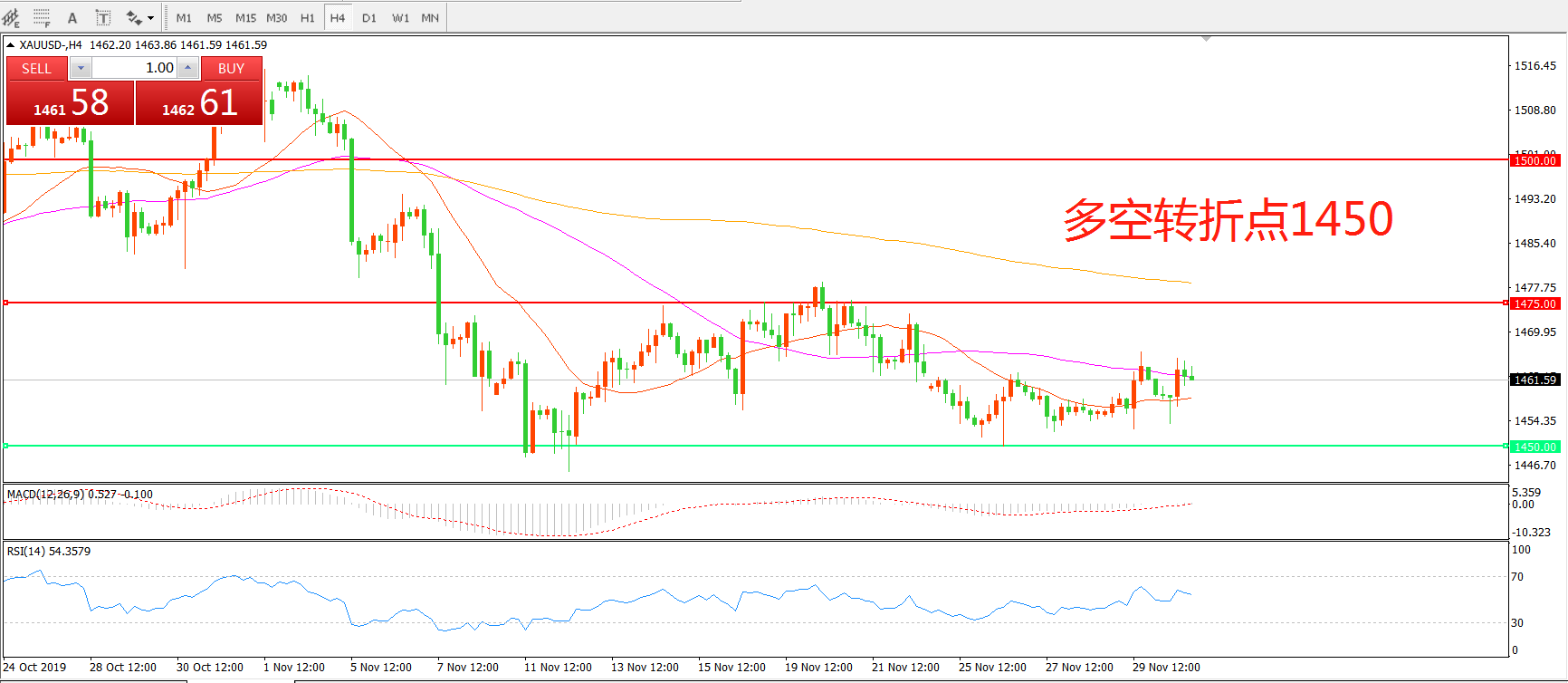交易策略:在1450.00之下看涨,目标1475.00   1500.00