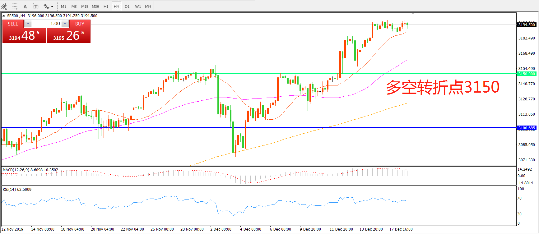 多空转折点:3150.00