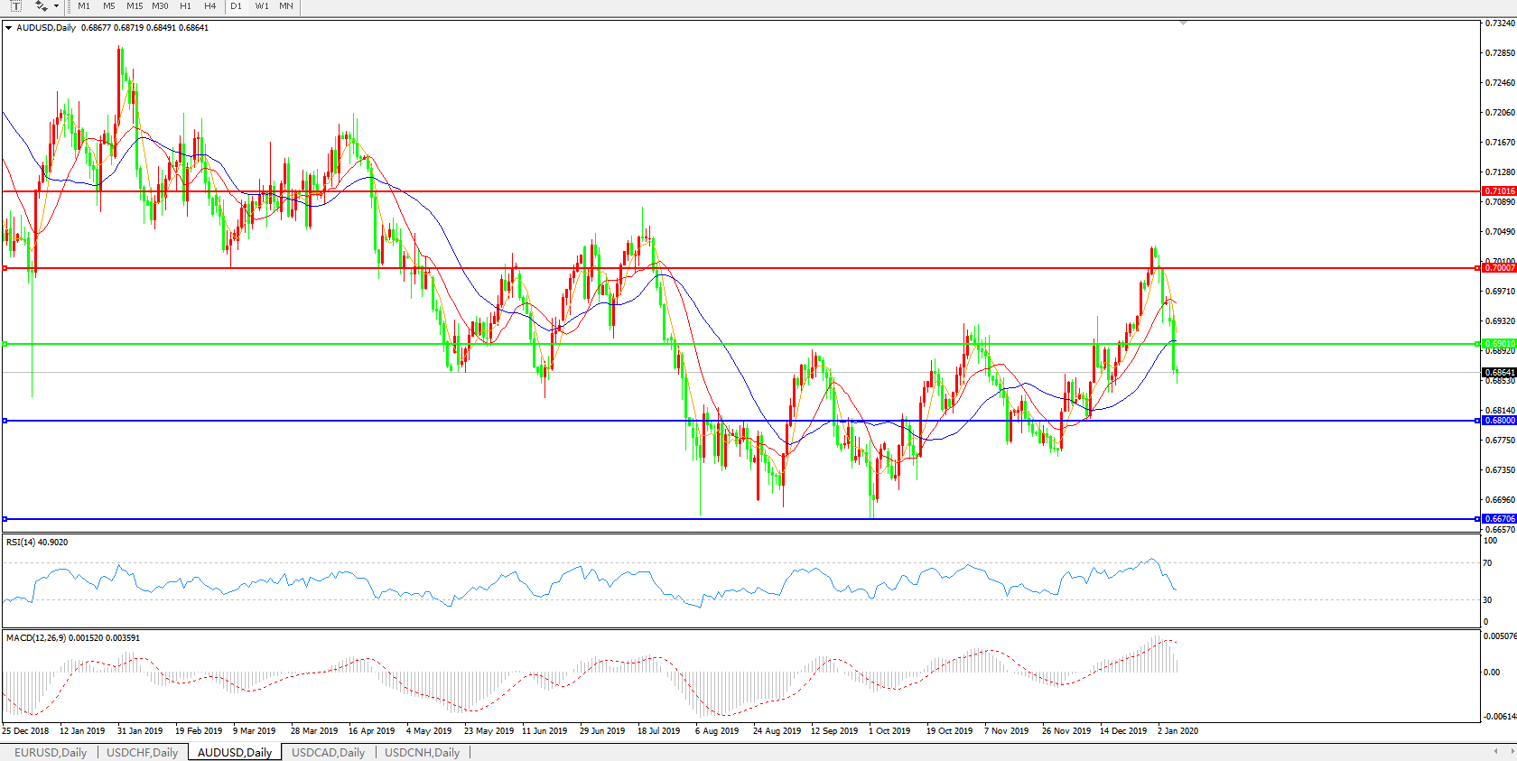 备选策略:0.6900上方看涨,目标0.7000、0.7100