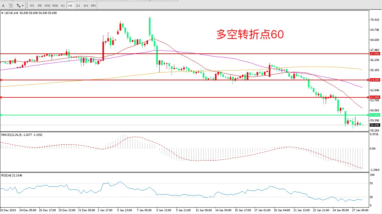 交易策略:在60.00之下看跌,目标57.00 55.00