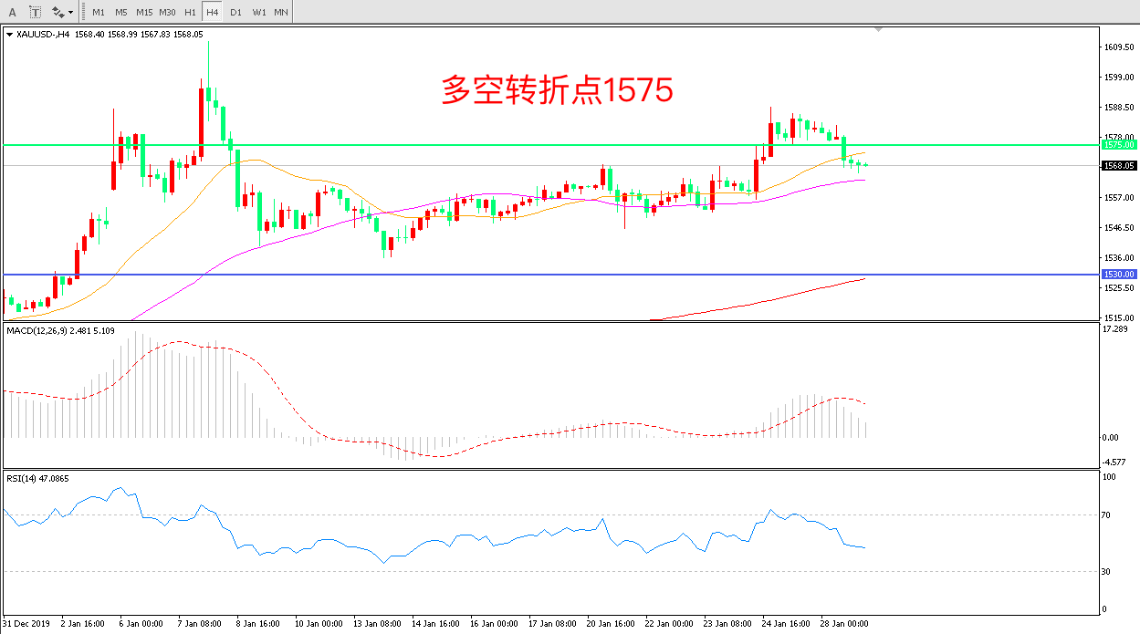 多空转折点:1575.00