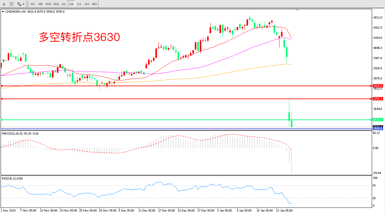 沪深300 CHINA 300 4小时图