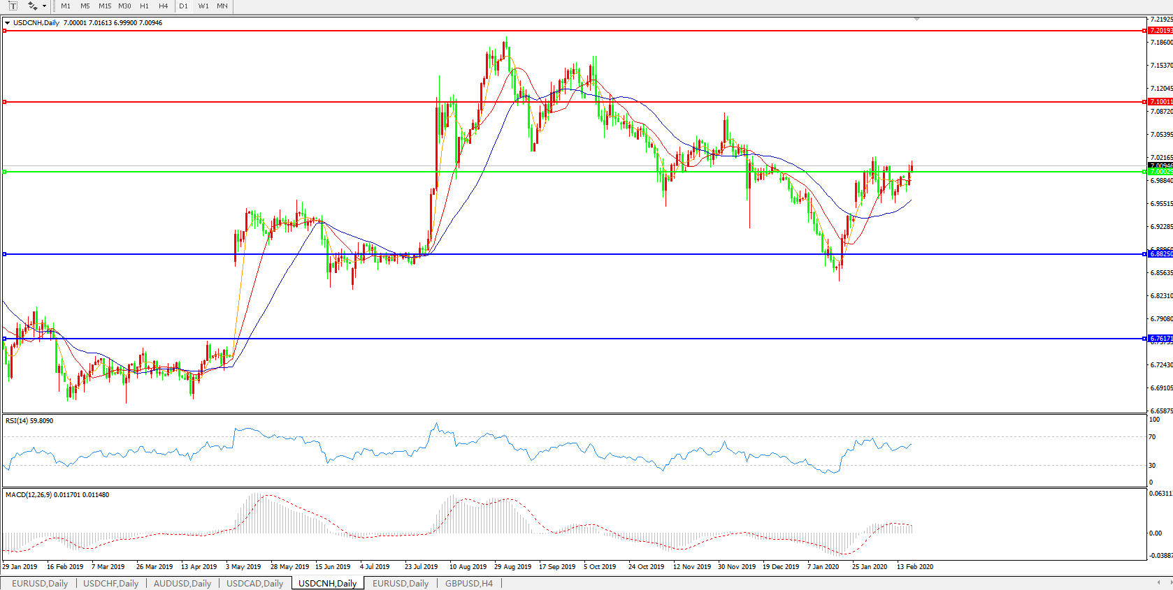 交易策略: 在7.0000之上,看涨,目标价位为7.1000,然后为7.2000。
