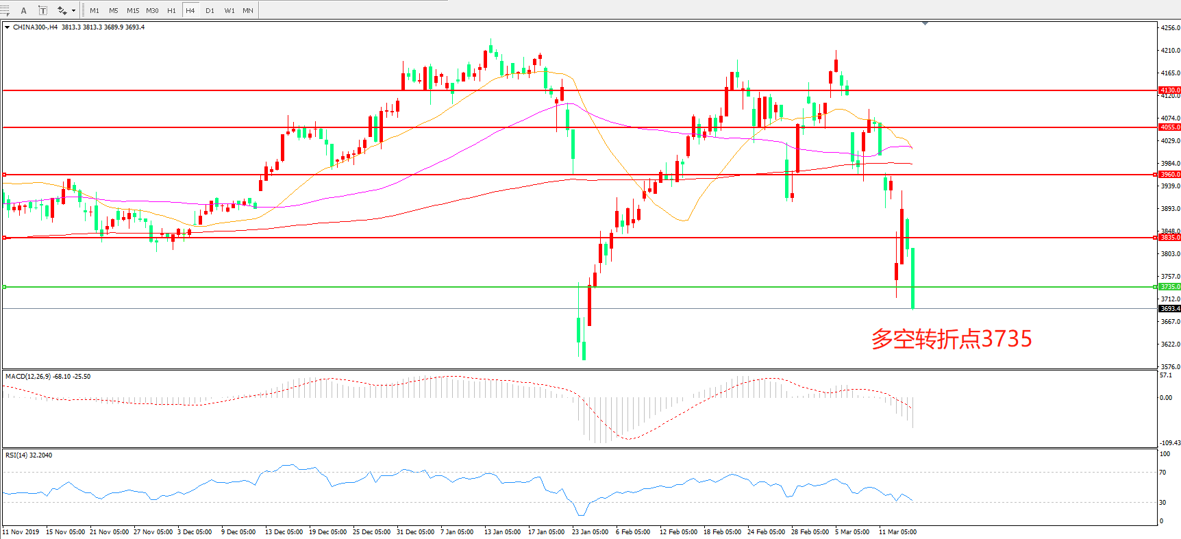 沪深300  CHINA 300   4小时图