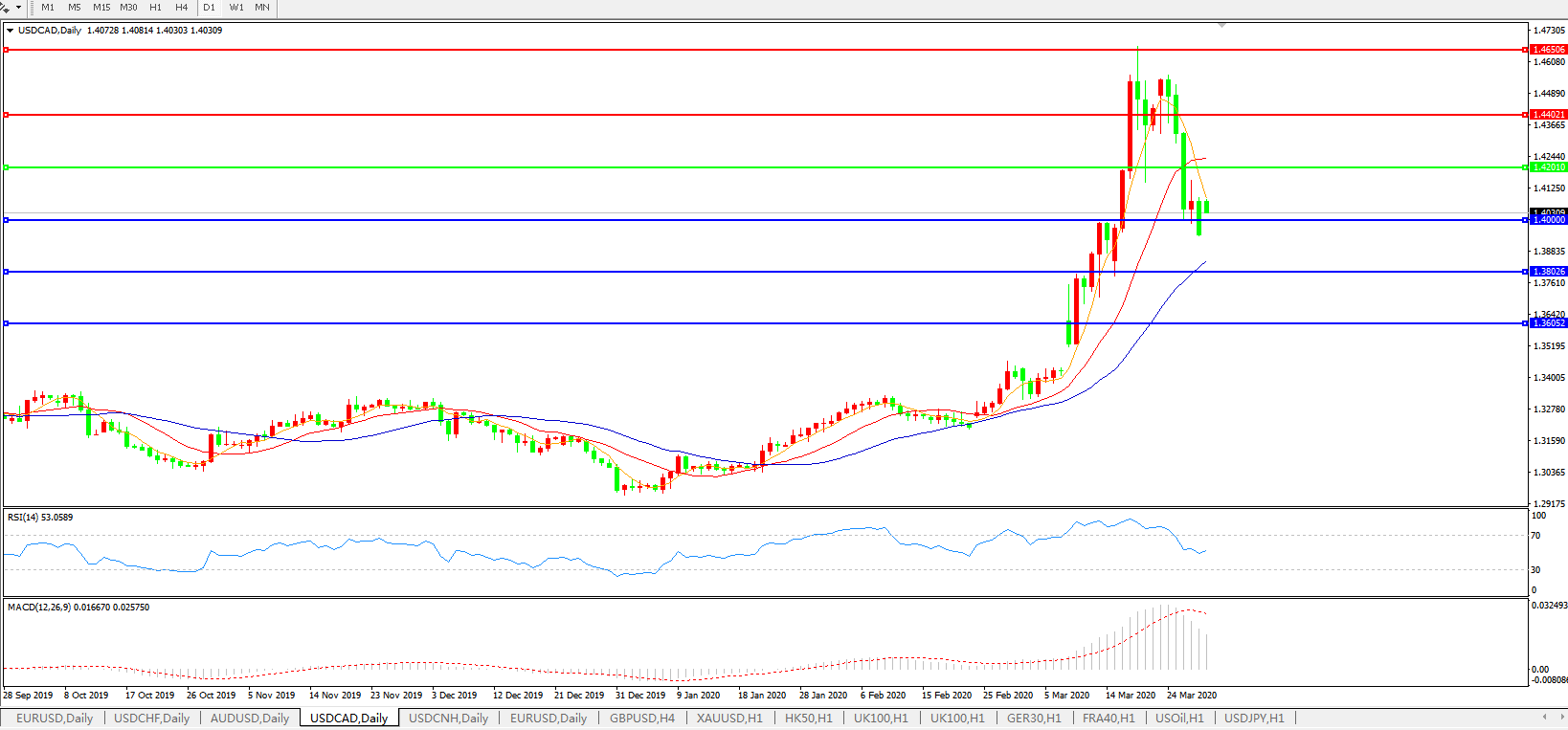 美元兑加元USDCAD 日线图: