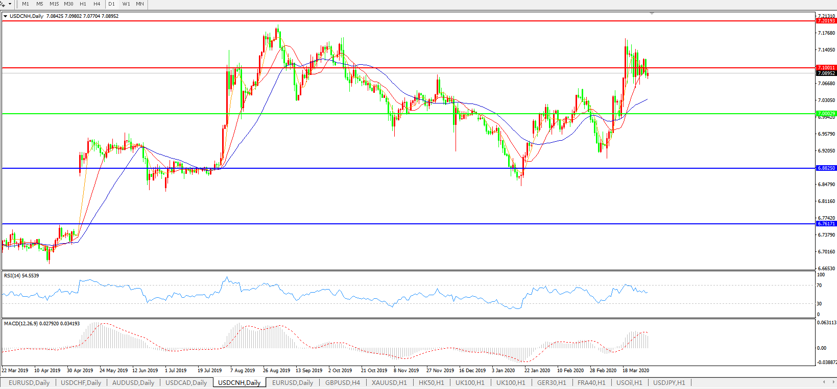 交易策略: 在7.0000之上,看涨,目标价位为7.1000,然后为7.2000。