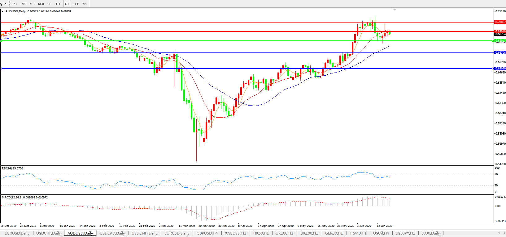 澳元兑美元AUDUSD 日线图: