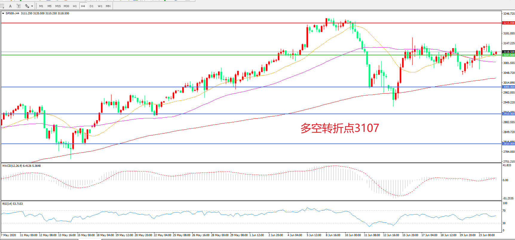 多空转折点:3107.00