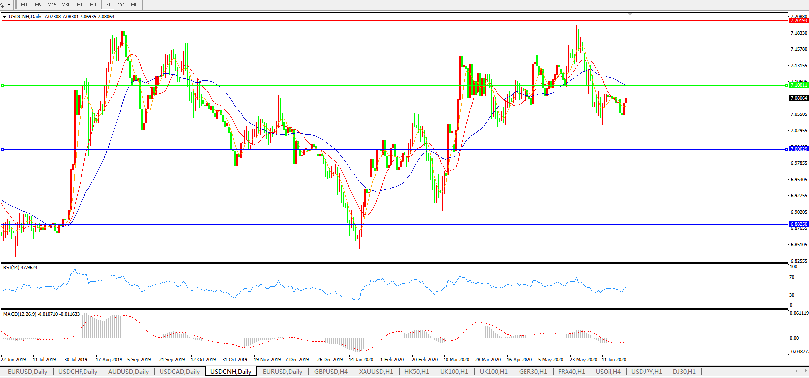 美元兑人民币USDCNH    日线图: