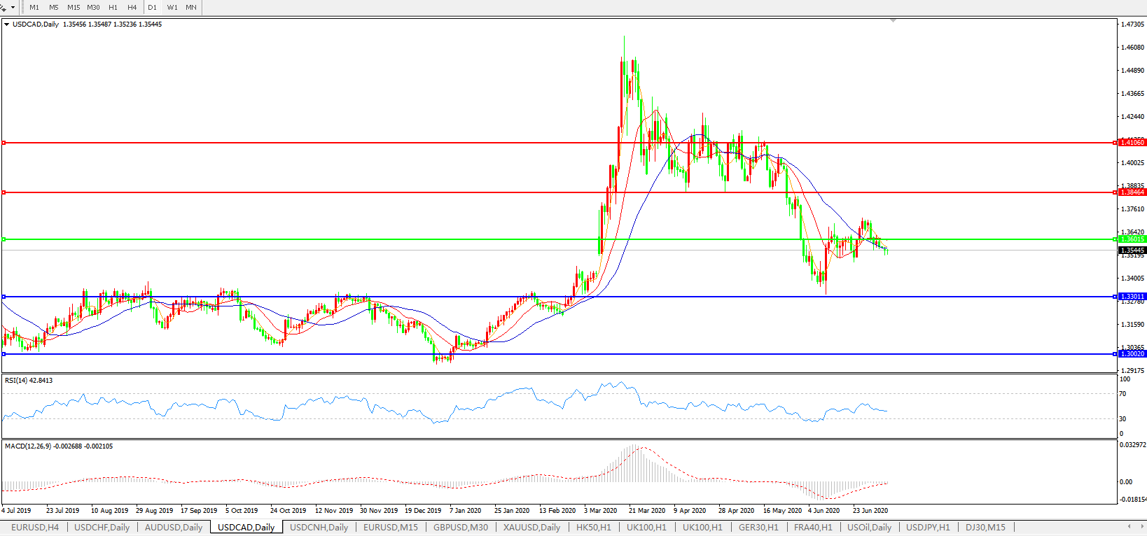 美元兑加元USDCAD 日线图:
