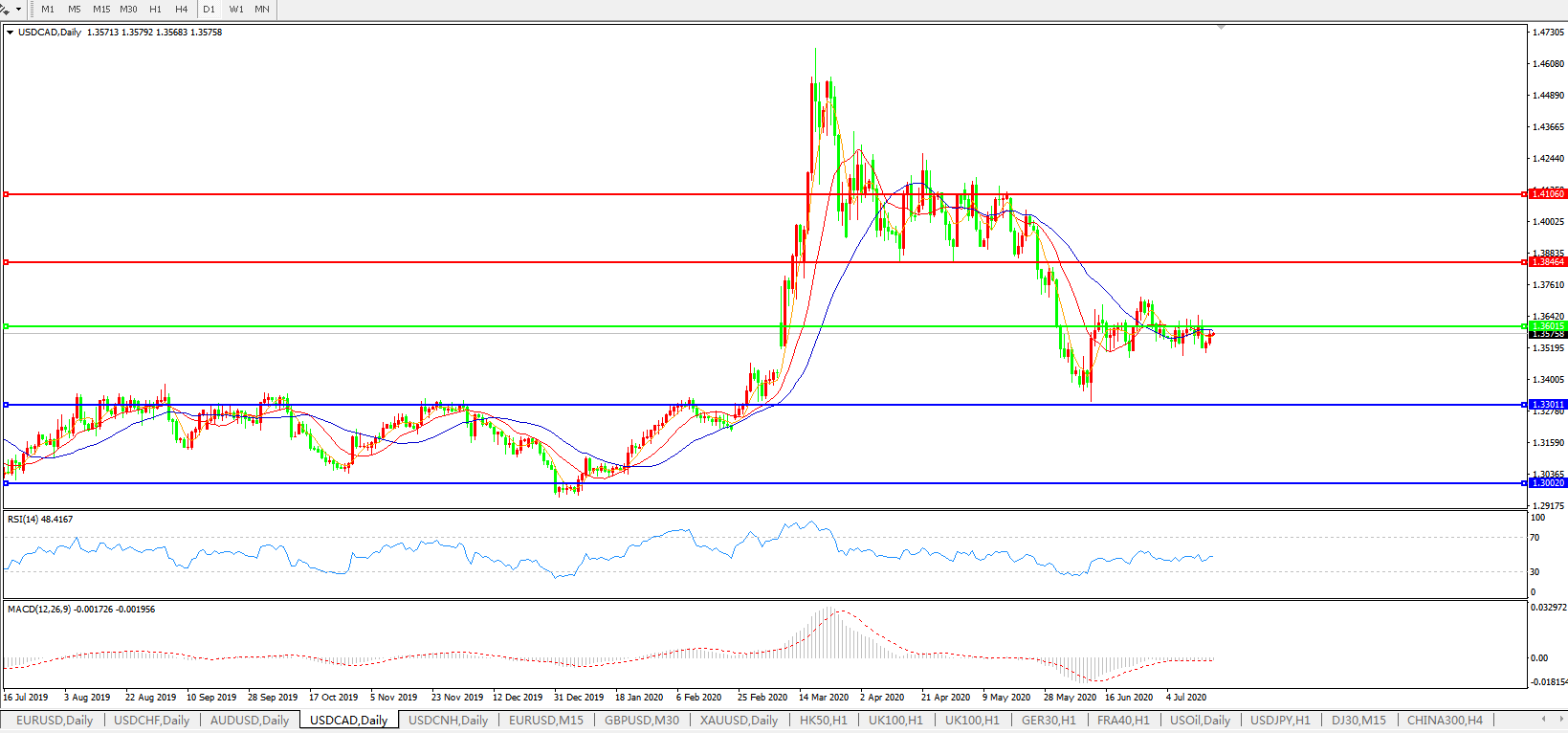 美元兑加元USDCAD    日线图: