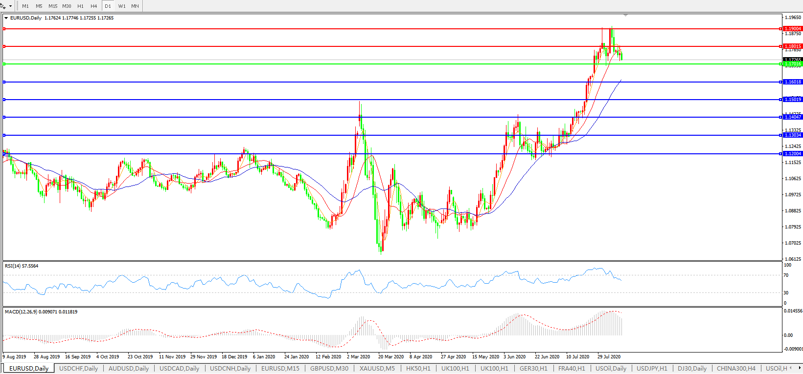欧元兑美元EURUSD 日线图: