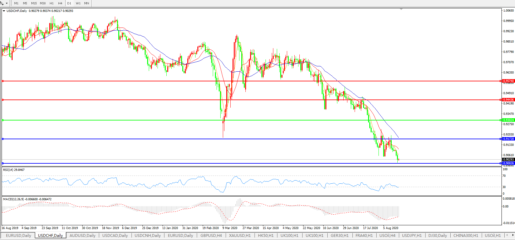 美元兑瑞郎USDCHF 日线图:
