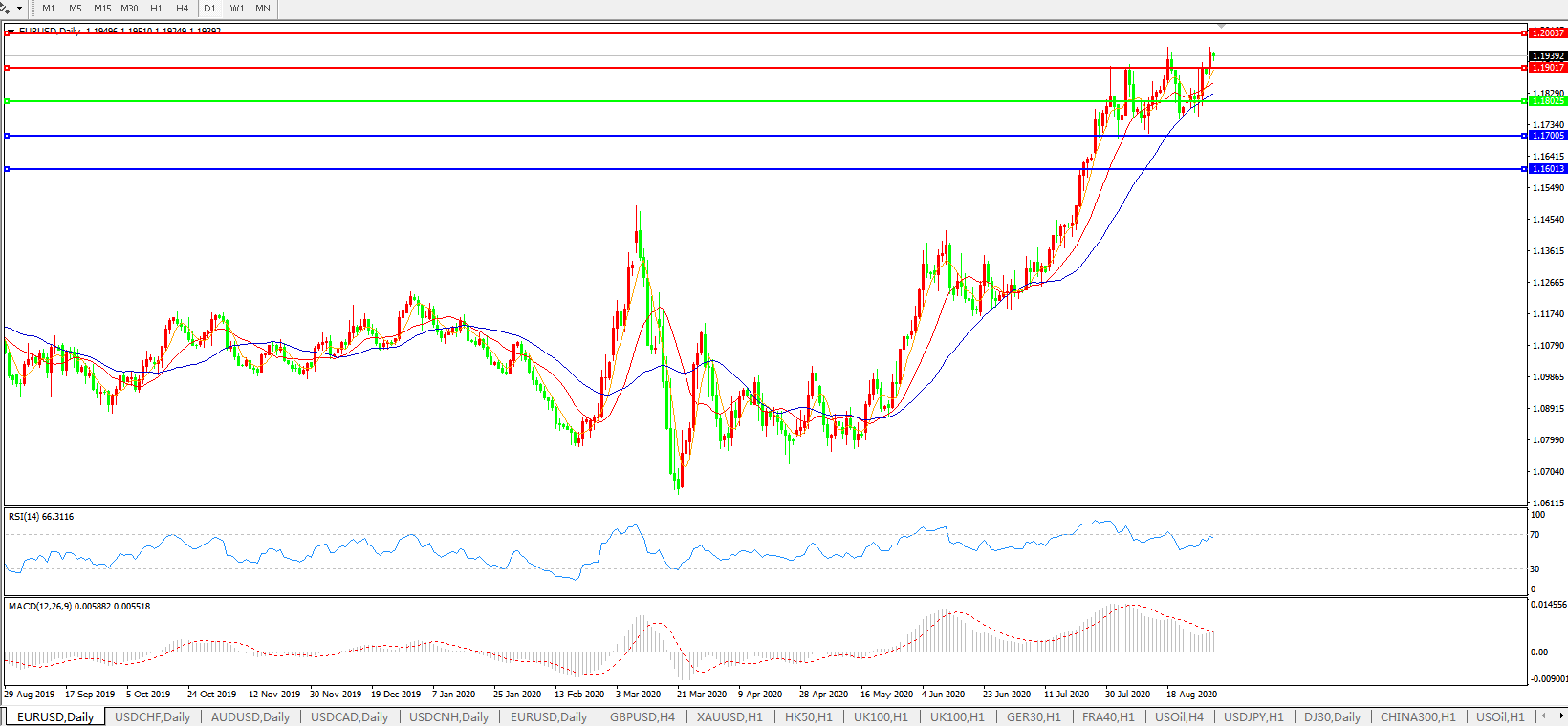 欧元兑美元EURUSD   日线图: