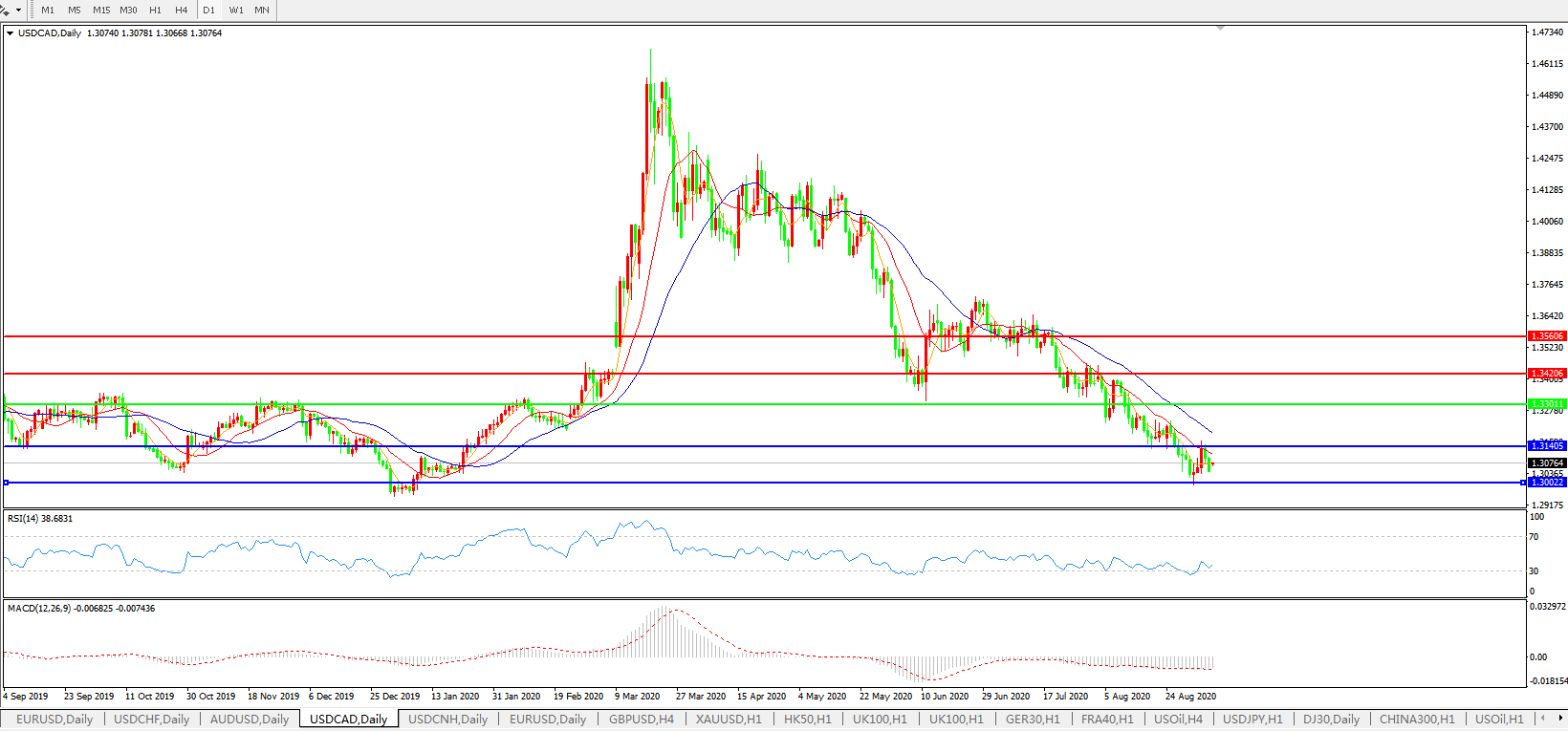 美元兑加元USDCAD    日线图: