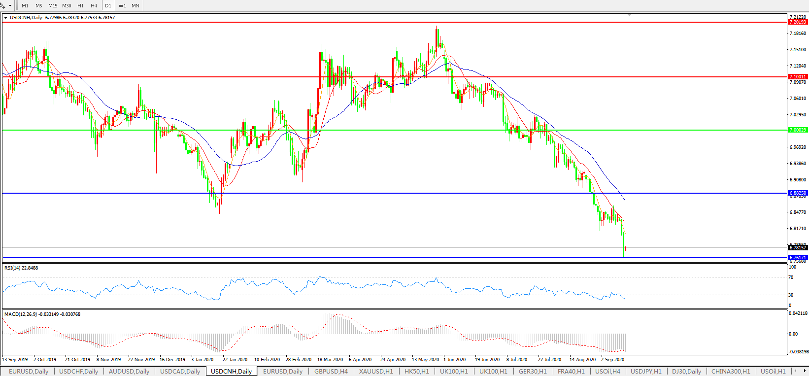 美元兑人民币USDCNH    日线图: