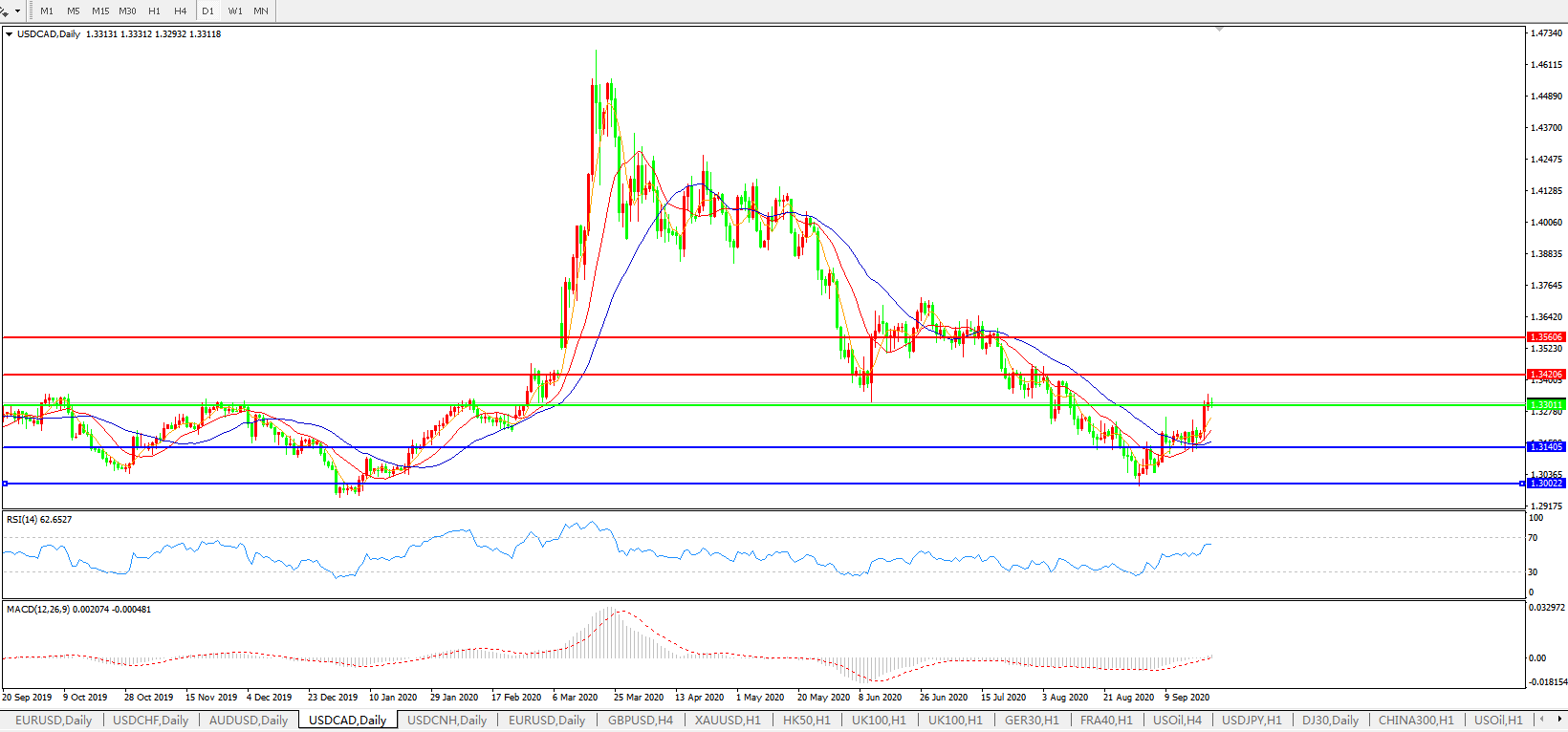 美元兑加元USDCAD    日线图:
